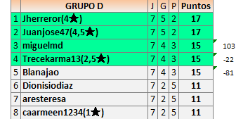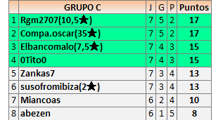Deja un comentarioEn está página se irán publicando los resultados de las diferentes partidas, siendo ambos jugadores responsables de subirlos o de comprobar que ya hayan sido publicados insertando un COMENTARIO en la parte inferior de la pantalla (opción “Deja tu comentario”), indicando el nombre de los dos jugadores y los puntos obtenidos en la partida.