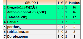 Deja un comentarioEn está página se irán publicando los resultados de las diferentes partidas, siendo ambos jugadores responsables de subirlos o de comprobar que ya hayan sido publicados insertando un COMENTARIO en la parte inferior de la pantalla (opción “Deja tu comentario”), indicando el nombre de los dos jugadores y los puntos obtenidos en la partida.