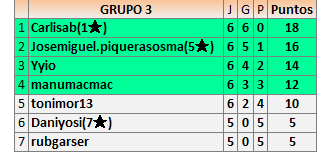Deja un comentarioEn está página se irán publicando los resultados de las diferentes partidas, siendo ambos jugadores responsables de subirlos o de comprobar que ya hayan sido publicados insertando un COMENTARIO en la parte inferior de la pantalla (opción “Deja tu comentario”), indicando el nombre de los dos jugadores y los puntos obtenidos en la partida.
