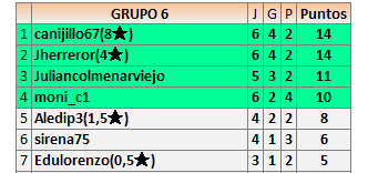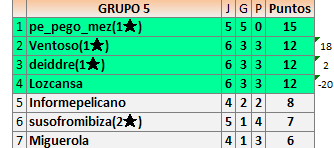 Deja un comentarioEn está página se irán publicando los resultados de las diferentes partidas, siendo ambos jugadores responsables de subirlos o de comprobar que ya hayan sido publicados insertando un COMENTARIO en la parte inferior de la pantalla (opción “Deja tu comentario”), indicando el nombre de los dos jugadores y los puntos obtenidos en la partida.