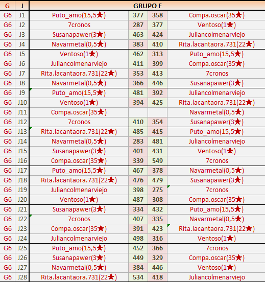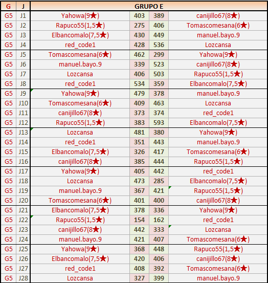 Deja un comentarioEn está página se irán publicando los resultados de las diferentes partidas, siendo ambos jugadores responsables de subirlos o de comprobar que ya hayan sido publicados insertando un COMENTARIO en la parte inferior de la pantalla (opción “Deja tu comentario”), indicando el nombre de los dos jugadores y los puntos obtenidos en la partida.