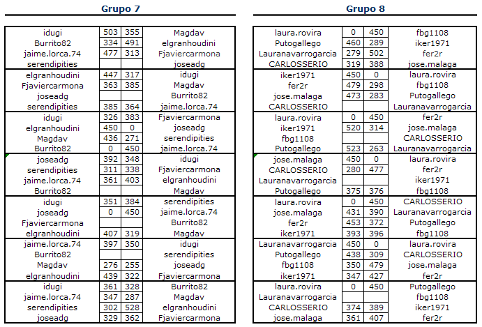 En está página se irán indicando los resultados de las diferentes partidas. Lo único que tienes que hacer es insertar un comentario en la parte inferior de la pantalla (“Deja tu comentario”) indicando el nombre de los dos usuarios y los puntos obtenidos por ambos en la partida. El vencedor de cada partida será el encargado de comunicar el resultado en este apartado.