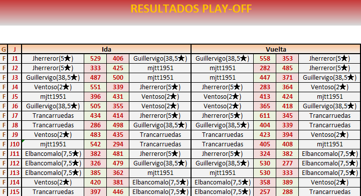 Fin PLAY OFF VUELTA: 16 de noviembre a las 21:00