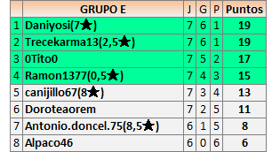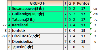 Deja un comentarioEn está página se irán publicando los resultados de las diferentes partidas, siendo ambos jugadores responsables de subirlos o de comprobar que ya hayan sido publicados insertando un COMENTARIO en la parte inferior de la pantalla (opción “Deja tu comentario”), indicando el nombre de los dos jugadores y los puntos obtenidos en la partida.