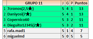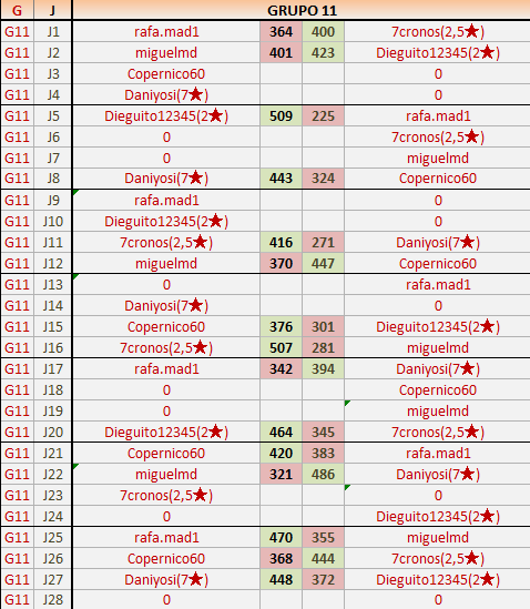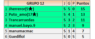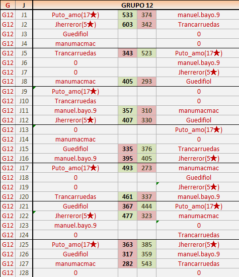 Deja un comentarioEn está página se irán publicando los resultados de las diferentes partidas, siendo ambos jugadores responsables de subirlos o de comprobar que ya hayan sido publicados insertando un COMENTARIO en la parte inferior de la pantalla (opción “Deja tu comentario”), indicando el nombre de los dos jugadores y los puntos obtenidos en la partida.