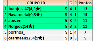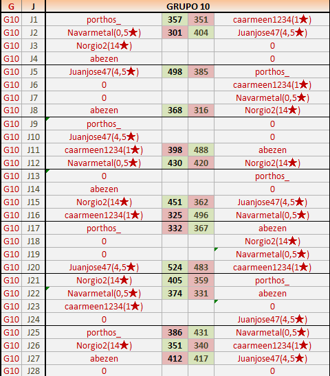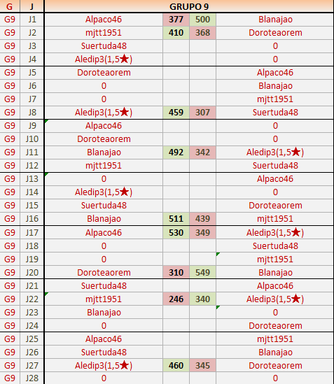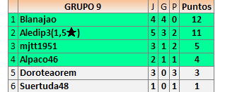8En está página se irán publicando los resultados de las diferentes partidas, siendo ambos jugadores responsables de subirlos o de comprobar que ya hayan sido publicados insertando un COMENTARIO en la parte inferior de la pantalla (opción “Deja tu comentario”), indicando el nombre de los dos jugadores y los puntos obtenidos en la partida.
