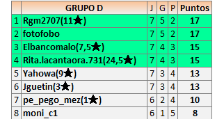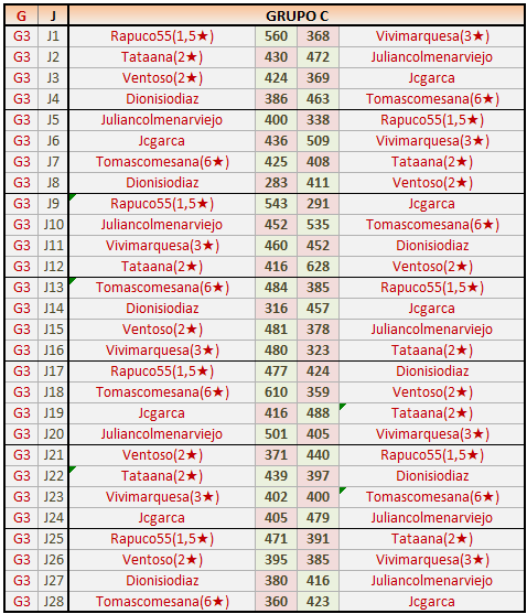 Deja un comentarioEn está página se irán publicando los resultados de las diferentes partidas, siendo ambos jugadores responsables de subirlos o de comprobar que ya hayan sido publicados insertando un COMENTARIO en la parte inferior de la pantalla (opción “Deja tu comentario”), indicando el nombre de los dos jugadores y los puntos obtenidos en la partida.