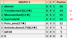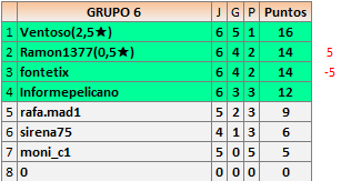Deja un comentarioEn está página se irán publicando los resultados de las diferentes partidas, siendo ambos jugadores responsables de subirlos o de comprobar que ya hayan sido publicados insertando un COMENTARIO en la parte inferior de la pantalla (opción “Deja tu comentario”), indicando el nombre de los dos jugadores y los puntos obtenidos en la partida.