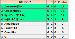 Deja un comentarioEn está página se irán publicando los resultados de las diferentes partidas, siendo ambos jugadores responsables de subirlos o de comprobar que ya hayan sido publicados insertando un COMENTARIO en la parte inferior de la pantalla (opción “Deja tu comentario”), indicando el nombre de los dos jugadores y los puntos obtenidos en la partida.