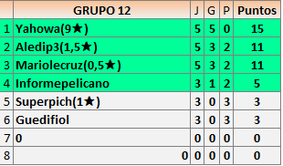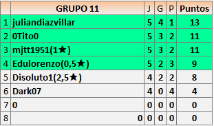 Deja un comentarioEn está página se irán publicando los resultados de las diferentes partidas, siendo ambos jugadores responsables de subirlos o de comprobar que ya hayan sido publicados insertando un COMENTARIO en la parte inferior de la pantalla (opción “Deja tu comentario”), indicando el nombre de los dos jugadores y los puntos obtenidos en la partida.