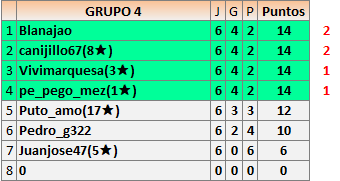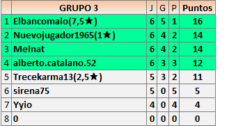 Deja un comentarioEn está página se irán publicando los resultados de las diferentes partidas, siendo ambos jugadores responsables de subirlos o de comprobar que ya hayan sido publicados insertando un COMENTARIO en la parte inferior de la pantalla (opción “Deja tu comentario”), indicando el nombre de los dos jugadores y los puntos obtenidos en la partida.