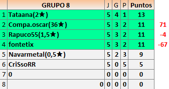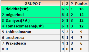 Deja un comentarioEn está página se irán publicando los resultados de las diferentes partidas, siendo ambos jugadores responsables de subirlos o de comprobar que ya hayan sido publicados insertando un COMENTARIO en la parte inferior de la pantalla (opción “Deja tu comentario”), indicando el nombre de los dos jugadores y los puntos obtenidos en la partida.