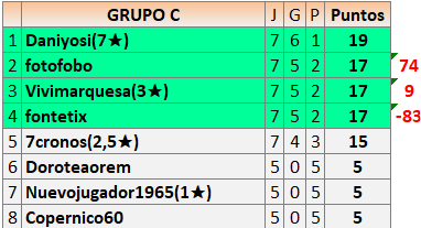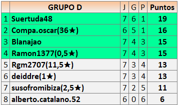 Deja un comentarioEn está página se irán publicando los resultados de las diferentes partidas, siendo ambos jugadores responsables de subirlos o de comprobar que ya hayan sido publicados insertando un COMENTARIO en la parte inferior de la pantalla (opción “Deja tu comentario”), indicando el nombre de los dos jugadores y los puntos obtenidos en la partida.