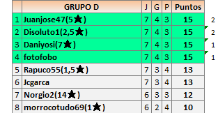 Deja un comentarioEn está página se irán publicando los resultados de las diferentes partidas, siendo ambos jugadores responsables de subirlos o de comprobar que ya hayan sido publicados insertando un COMENTARIO en la parte inferior de la pantalla (opción “Deja tu comentario”), indicando el nombre de los dos jugadores y los puntos obtenidos en la partida.