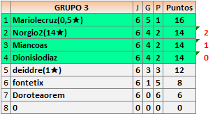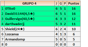 Deja un comentarioEn está página se irán publicando los resultados de las diferentes partidas, siendo ambos jugadores responsables de subirlos o de comprobar que ya hayan sido publicados insertando un COMENTARIO en la parte inferior de la pantalla (opción “Deja tu comentario”), indicando el nombre de los dos jugadores y los puntos obtenidos en la partida.