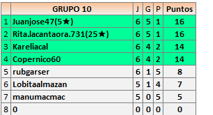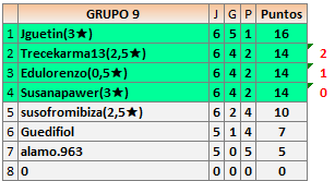 Deja un comentarioEn está página se irán publicando los resultados de las diferentes partidas, siendo ambos jugadores responsables de subirlos o de comprobar que ya hayan sido publicados insertando un COMENTARIO en la parte inferior de la pantalla (opción “Deja tu comentario”), indicando el nombre de los dos jugadores y los puntos obtenidos en la partida.