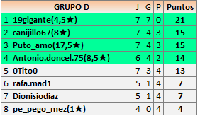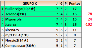Deja un comentarioEn está página se irán publicando los resultados de las diferentes partidas, siendo ambos jugadores responsables de subirlos o de comprobar que ya hayan sido publicados insertando un COMENTARIO en la parte inferior de la pantalla (opción “Deja tu comentario”), indicando el nombre de los dos jugadores y los puntos obtenidos en la partida.