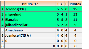 Deja un comentarioEn está página se irán publicando los resultados de las diferentes partidas, siendo ambos jugadores responsables de subirlos o de comprobar que ya hayan sido publicados insertando un COMENTARIO en la parte inferior de la pantalla (opción “Deja tu comentario”), indicando el nombre de los dos jugadores y los puntos obtenidos en la partida.