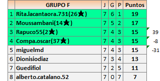 Deja un comentarioEn está página se irán publicando los resultados de las diferentes partidas, siendo ambos jugadores responsables de subirlos o de comprobar que ya hayan sido publicados insertando un COMENTARIO en la parte inferior de la pantalla (opción “Deja tu comentario”), indicando el nombre de los dos jugadores y los puntos obtenidos en la partida.