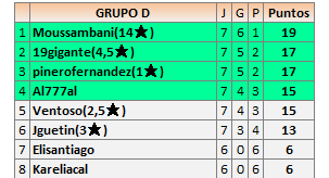 Deja un comentarioEn está página se irán publicando los resultados de las diferentes partidas, siendo ambos jugadores responsables de subirlos o de comprobar que ya hayan sido publicados insertando un COMENTARIO en la parte inferior de la pantalla (opción “Deja tu comentario”), indicando el nombre de los dos jugadores y los puntos obtenidos en la partida.