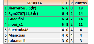 Deja un comentarioEn está página se irán publicando los resultados de las diferentes partidas, siendo ambos jugadores responsables de subirlos o de comprobar que ya hayan sido publicados insertando un COMENTARIO en la parte inferior de la pantalla (opción “Deja tu comentario”), indicando el nombre de los dos jugadores y los puntos obtenidos en la partida.