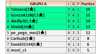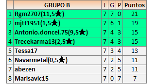 Deja un comentarioEn está página se irán publicando los resultados de las diferentes partidas, siendo ambos jugadores responsables de subirlos o de comprobar que ya hayan sido publicados insertando un COMENTARIO en la parte inferior de la pantalla (opción “Deja tu comentario”), indicando el nombre de los dos jugadores y los puntos obtenidos en la partida.