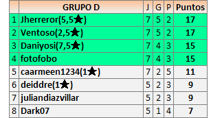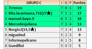 Deja un comentarioEn está página se irán publicando los resultados de las diferentes partidas, siendo ambos jugadores responsables de subirlos o de comprobar que ya hayan sido publicados insertando un COMENTARIO en la parte inferior de la pantalla (opción “Deja tu comentario”), indicando el nombre de los dos jugadores y los puntos obtenidos en la partida.