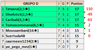 Deja un comentarioEn está página se irán publicando los resultados de las diferentes partidas, siendo ambos jugadores responsables de subirlos o de comprobar que ya hayan sido publicados insertando un COMENTARIO en la parte inferior de la pantalla (opción “Deja tu comentario”), indicando el nombre de los dos jugadores y los puntos obtenidos en la partida.
