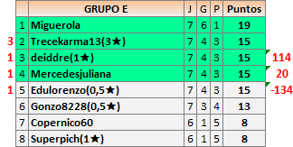 Deja un comentarioEn está página se irán publicando los resultados de las diferentes partidas, siendo ambos jugadores responsables de subirlos o de comprobar que ya hayan sido publicados insertando un COMENTARIO en la parte inferior de la pantalla (opción “Deja tu comentario”), indicando el nombre de los dos jugadores y los puntos obtenidos en la partida.