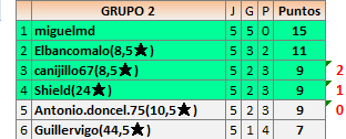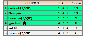 Deja un comentarioEn está página se irán publicando los resultados de las diferentes partidas, siendo ambos jugadores responsables de subirlos o de comprobar que ya hayan sido publicados insertando un COMENTARIO en la parte inferior de la pantalla (opción “Deja tu comentario”), indicando el nombre de los dos jugadores y los puntos obtenidos en la partida.