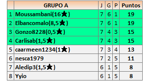 Deja un comentarioEn está página se irán publicando los resultados de las diferentes partidas, siendo ambos jugadores responsables de subirlos o de comprobar que ya hayan sido publicados insertando un COMENTARIO en la parte inferior de la pantalla (opción “Deja tu comentario”), indicando el nombre de los dos jugadores y los puntos obtenidos en la partida.