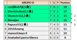 Deja un comentarioEn está página se irán publicando los resultados de las diferentes partidas, siendo ambos jugadores responsables de subirlos o de comprobar que ya hayan sido publicados insertando un COMENTARIO en la parte inferior de la pantalla (opción “Deja tu comentario”), indicando el nombre de los dos jugadores y los puntos obtenidos en la partida.