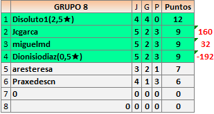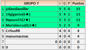 Deja un comentarioEn está página se irán publicando los resultados de las diferentes partidas, siendo ambos jugadores responsables de subirlos o de comprobar que ya hayan sido publicados insertando un COMENTARIO en la parte inferior de la pantalla (opción “Deja tu comentario”), indicando el nombre de los dos jugadores y los puntos obtenidos en la partida.
