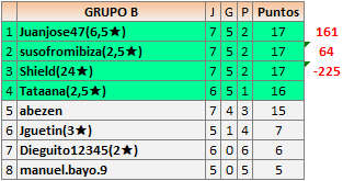 Deja un comentarioEn está página se irán publicando los resultados de las diferentes partidas, siendo ambos jugadores responsables de subirlos o de comprobar que ya hayan sido publicados insertando un COMENTARIO en la parte inferior de la pantalla (opción “Deja tu comentario”), indicando el nombre de los dos jugadores y los puntos obtenidos en la partida.