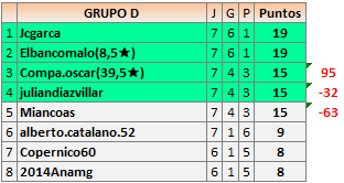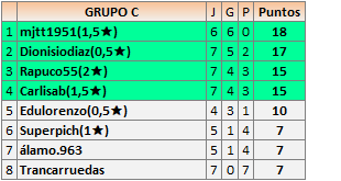 Deja un comentarioEn está página se irán publicando los resultados de las diferentes partidas, siendo ambos jugadores responsables de subirlos o de comprobar que ya hayan sido publicados insertando un COMENTARIO en la parte inferior de la pantalla (opción “Deja tu comentario”), indicando el nombre de los dos jugadores y los puntos obtenidos en la partida.