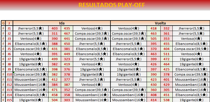 Enhorabuena al campeón y al resto de jugadores. Ha sido un placer jugar este Play off con todos vosotros.