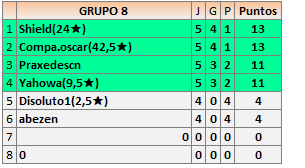 Deja un comentarioEn está página se irán publicando los resultados de las diferentes partidas, siendo ambos jugadores responsables de subirlos o de comprobar que ya hayan sido publicados insertando un COMENTARIO en la parte inferior de la pantalla (opción “Deja tu comentario”), indicando el nombre de los dos jugadores y los puntos obtenidos en la partida.