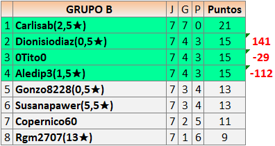 Deja un comentarioEn está página se irán publicando los resultados de las diferentes partidas, siendo ambos jugadores responsables de subirlos o de comprobar que ya hayan sido publicados insertando un COMENTARIO en la parte inferior de la pantalla (opción “Deja tu comentario”), indicando el nombre de los dos jugadores y los puntos obtenidos en la partida.