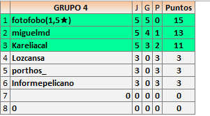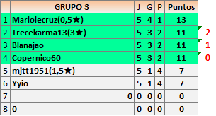 Deja un comentarioEn está página se irán publicando los resultados de las diferentes partidas, siendo ambos jugadores responsables de subirlos o de comprobar que ya hayan sido publicados insertando un COMENTARIO en la parte inferior de la pantalla (opción “Deja tu comentario”), indicando el nombre de los dos jugadores y los puntos obtenidos en la partida.