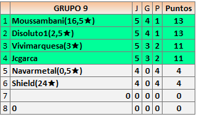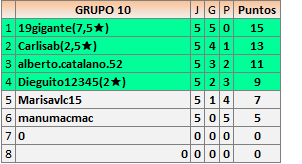 Deja un comentarioEn está página se irán publicando los resultados de las diferentes partidas, siendo ambos jugadores responsables de subirlos o de comprobar que ya hayan sido publicados insertando un COMENTARIO en la parte inferior de la pantalla (opción “Deja tu comentario”), indicando el nombre de los dos jugadores y los puntos obtenidos en la partida.