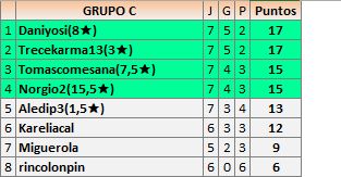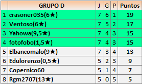 Deja un comentarioEn está página se irán publicando los resultados de las diferentes partidas, siendo ambos jugadores responsables de subirlos o de comprobar que ya hayan sido publicados insertando un COMENTARIO en la parte inferior de la pantalla (opción “Deja tu comentario”), indicando el nombre de los dos jugadores y los puntos obtenidos en la partida.
