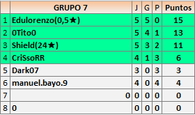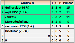 Deja un comentarioEn está página se irán publicando los resultados de las diferentes partidas, siendo ambos jugadores responsables de subirlos o de comprobar que ya hayan sido publicados insertando un COMENTARIO en la parte inferior de la pantalla (opción “Deja tu comentario”), indicando el nombre de los dos jugadores y los puntos obtenidos en la partida.