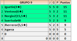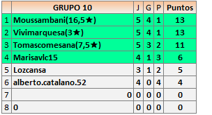 Deja un comentarioEn está página se irán publicando los resultados de las diferentes partidas, siendo ambos jugadores responsables de subirlos o de comprobar que ya hayan sido publicados insertando un COMENTARIO en la parte inferior de la pantalla (opción “Deja tu comentario”), indicando el nombre de los dos jugadores y los puntos obtenidos en la partida.