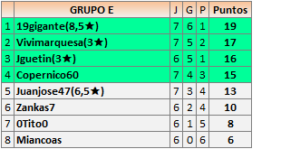 Deja un comentarioEn está página se irán publicando los resultados de las diferentes partidas, siendo ambos jugadores responsables de subirlos o de comprobar que ya hayan sido publicados insertando un COMENTARIO en la parte inferior de la pantalla (opción “Deja tu comentario”), indicando el nombre de los dos jugadores y los puntos obtenidos en la partida.
