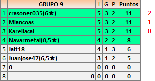 Deja un comentarioEn está página se irán publicando los resultados de las diferentes partidas, siendo ambos jugadores responsables de subirlos o de comprobar que ya hayan sido publicados insertando un COMENTARIO en la parte inferior de la pantalla (opción “Deja tu comentario”), indicando el nombre de los dos jugadores y los puntos obtenidos en la partida.