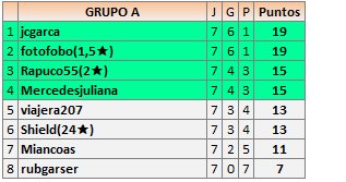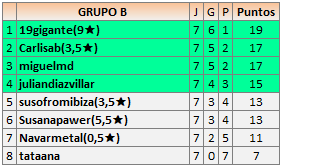 Deja un comentarioEn está página se irán publicando los resultados de las diferentes partidas, siendo ambos jugadores responsables de subirlos o de comprobar que ya hayan sido publicados insertando un COMENTARIO en la parte inferior de la pantalla (opción “Deja tu comentario”), indicando el nombre de los dos jugadores y los puntos obtenidos en la partida.
