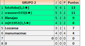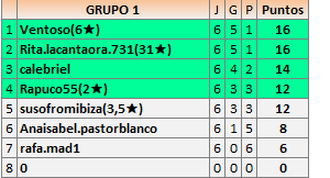 Deja un comentarioEn está página se irán publicando los resultados de las diferentes partidas, siendo ambos jugadores responsables de subirlos o de comprobar que ya hayan sido publicados insertando un COMENTARIO en la parte inferior de la pantalla (opción “Deja tu comentario”), indicando el nombre de los dos jugadores y los puntos obtenidos en la partida.