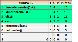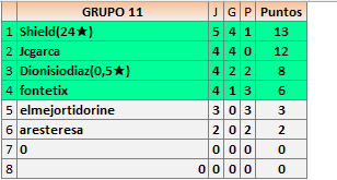 Deja un comentarioEn está página se irán publicando los resultados de las diferentes partidas, siendo ambos jugadores responsables de subirlos o de comprobar que ya hayan sido publicados insertando un COMENTARIO en la parte inferior de la pantalla (opción “Deja tu comentario”), indicando el nombre de los dos jugadores y los puntos obtenidos en la partida.