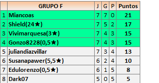 Deja un comentarioEn está página se irán publicando los resultados de las diferentes partidas, siendo ambos jugadores responsables de subirlos o de comprobar que ya hayan sido publicados insertando un COMENTARIO en la parte inferior de la pantalla (opción “Deja tu comentario”), indicando el nombre de los dos jugadores y los puntos obtenidos en la partida.