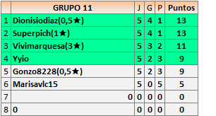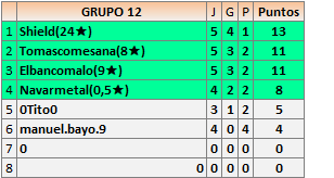 Deja un comentarioEn está página se irán publicando los resultados de las diferentes partidas, siendo ambos jugadores responsables de subirlos o de comprobar que ya hayan sido publicados insertando un COMENTARIO en la parte inferior de la pantalla (opción “Deja tu comentario”), indicando el nombre de los dos jugadores y los puntos obtenidos en la partida.